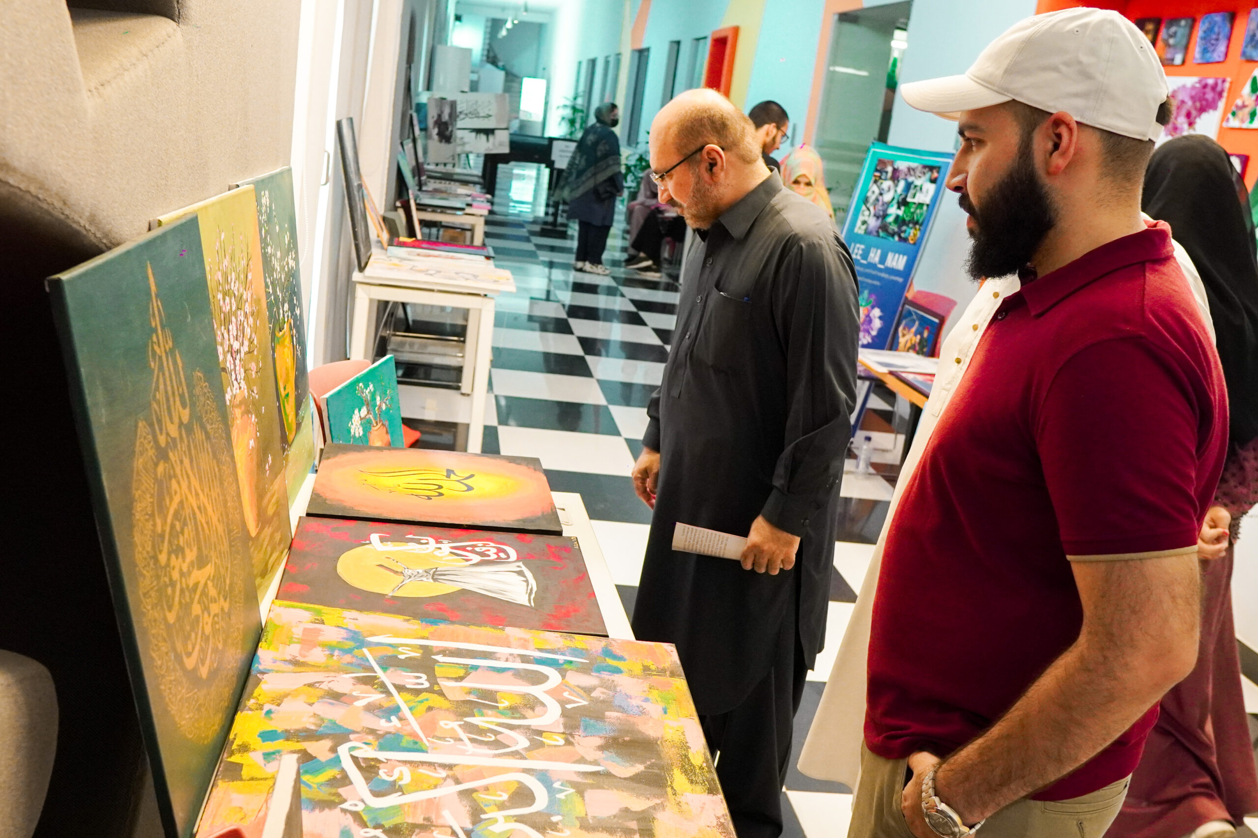 One of the artists Manahel Saleem, a medical student, inspired the visitors through her majestic artworks, which included portraits, calligraphy, and abstract art. Her portraits of anime characters and Korean boys were worth seeing.